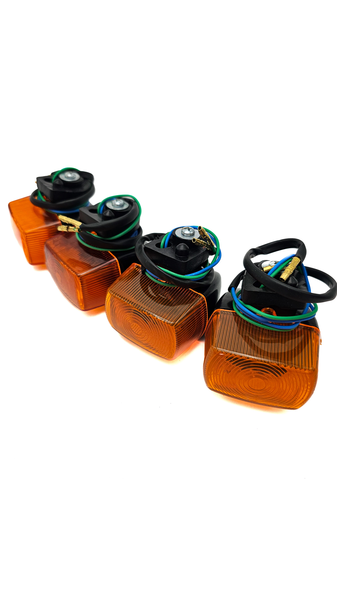 Kit de piscas completos, projetado para reposição ou personalização de motocicletas Honda. O conjunto inclui 4 piscas, com design similar ao original, garantindo alta compatibilidade e funcionalidade.